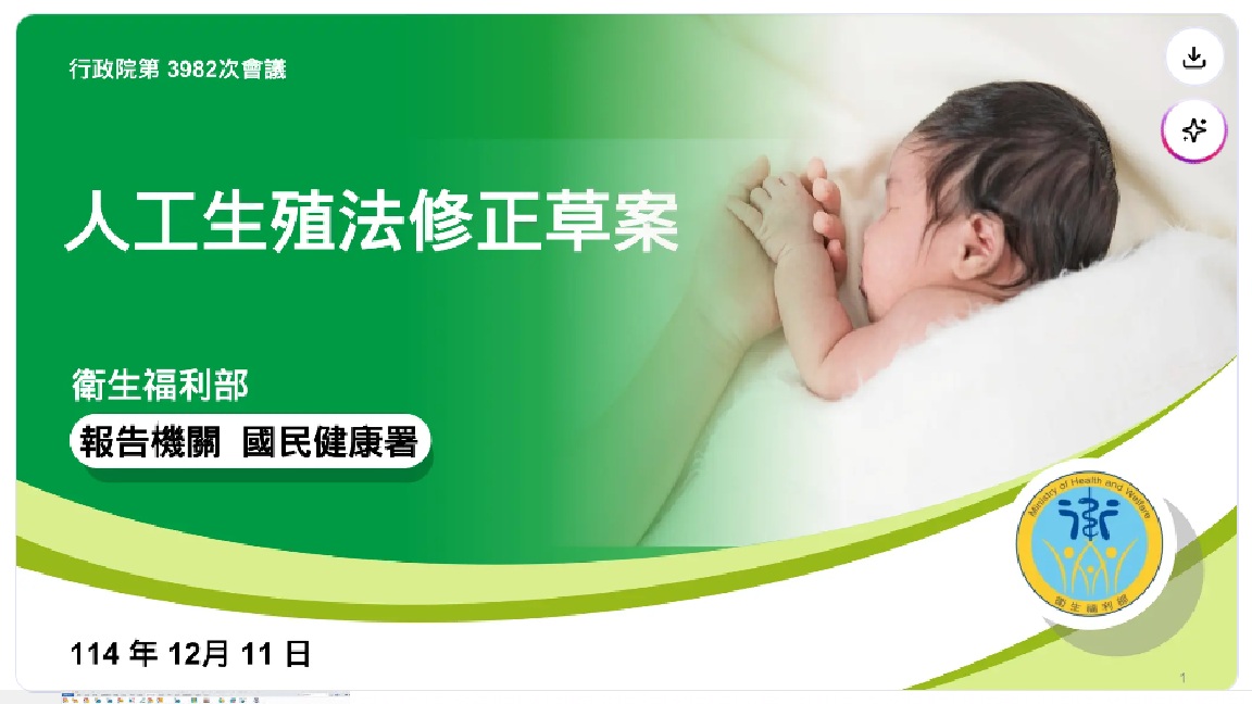 【記者姚碩彥/台北】尊重女性生育自主權,落實「兒童最佳利益」之保護,行政院會今(11)日通過衛生福利部擬具之《人工生殖法》修正草案,將函請立法院審議。行政院副院長鄭麗君請衛福部積極與立法院朝野各黨團溝通協調,早日完成立法程序。