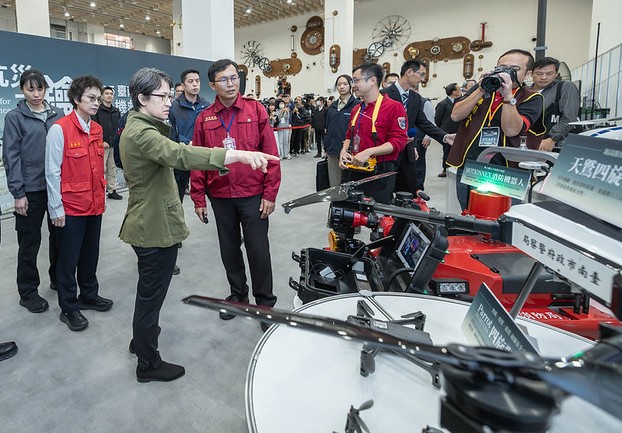 蕭副總統提到,現場展示許多新興科技技術,像是物流型及防災型無人機,包括面臨通訊中斷、偏鄉投藥、病媒蚊消毒、物資支援等問題時,均可運用無人機大幅提高救災工作效率,也可以協助災後加速評估災損狀況,讓相關指揮及救災單位即時掌握全盤資訊,進行更妥善的規劃,讓指揮系統做出更精準及更具效能的防災決策。