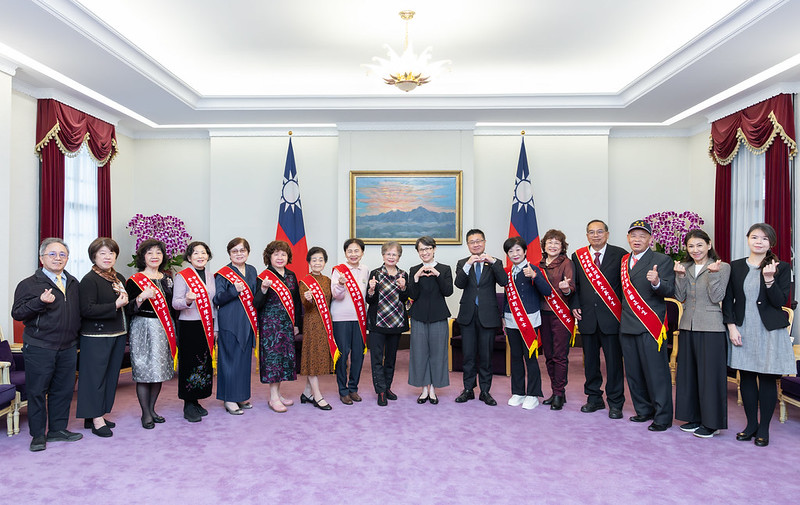 第30屆志願服務楷模「金駝獎」得獎人一行尚包括中華民國志願服務協會理事長藍高玉雲等,由衛生福利部次長呂建德陪同,前來總統府晉見蕭副總統。2025/01/19