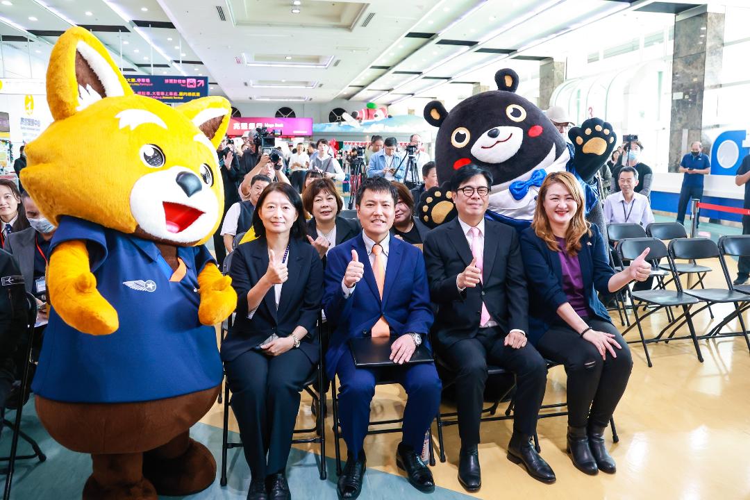 【記者陳采琳/高雄】看好高雄發展,捷星日本航空(Jetstar Japan)開通「高雄-東京成田」直飛航線。高雄市長陳其邁今(18)日出席於高雄國際機場舉辦的航線首航慶祝典禮,並與捷星日本航空田中正和社長共同參與啟動儀式。