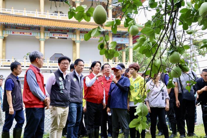 【記者陳怡如/台南】丹娜絲颱風挾帶強風侵襲台南,造成農漁業災損嚴重。賴清德總統今(8)特別南下視察,由台南市長黃偉哲全程陪同前往麻豆、北門等地勘災,瞭解果園受損情形與蘆竹溝漁港一帶漁船受損狀況。農業部長陳駿季、經濟部長郭智輝、漁業署署長王茂城、農糧署副署長陳啓榮、立法委員林俊憲、郭國文、陳亭妃、賴惠員、市議員謝舒凡也到場表達關切。