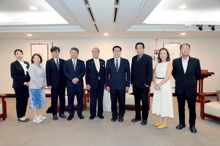 【記者陳怡如/台南】日本金澤市議會議長前誠一於今(23)日率北幸栽、稻端明浩、喜成清惠等議員前來拜會黃偉哲市長,由新聞及國際關係處處長蘇恩恩、財團法人臺南市台日文化友好交流基金會榮譽董事長郭貞慧陪同,會談中就雙方文化、歷史、教育等交流進行討論。前誠議長也在會中轉交金澤市市長村山卓的信函給黃偉哲市長。