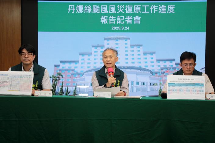 【記者陳怡如/台南】台南市政府今(24)日上午於永華市政中心召開「丹娜絲颱風災後復原進度記者會」,由秘書長尤天厚主持,針對屋損修繕、拆除媒合進度及慰助金發放、農損補助核撥狀況,邀集工務局、農業局及相關單位說明最新進度。