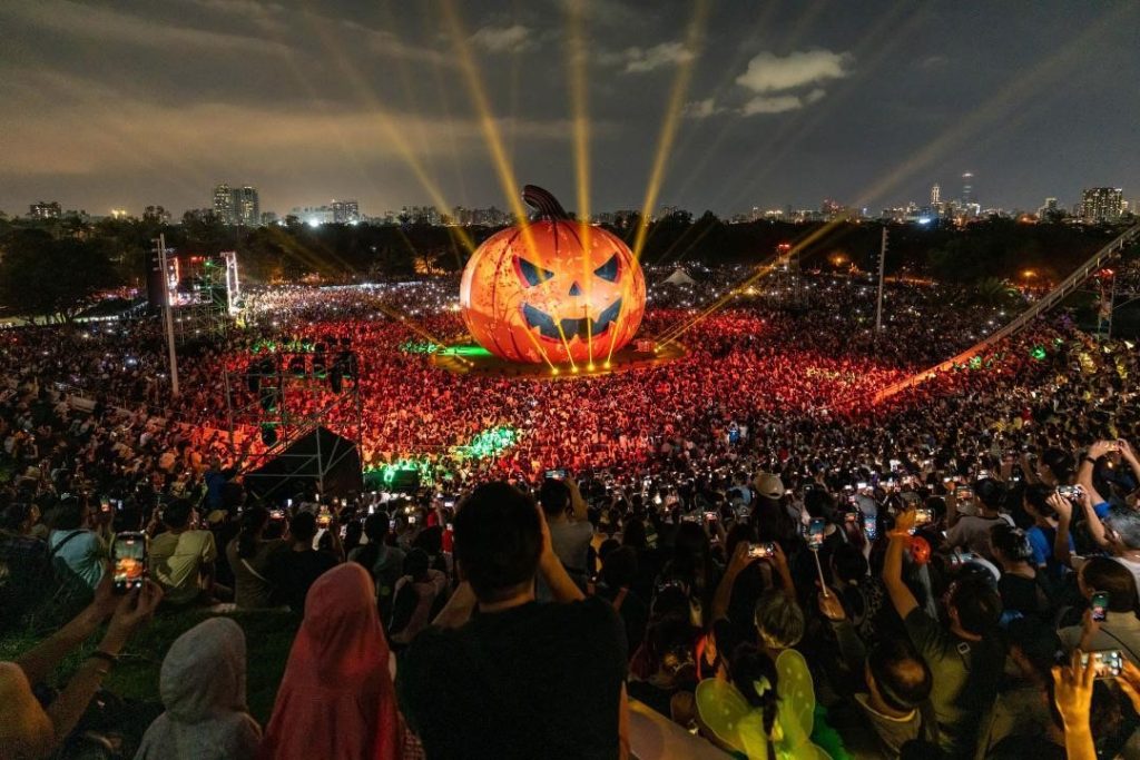 「六大鬼怪主題裝置」共同打造出1000盞南瓜燈大道,「不給糖就搞怪」鬼怪商號給糖站前也擠滿小小萌鬼伸手討糖。遊行當日下午2時起發放限量紀念品萬聖節造型氣球手環,吸引親子爭相領取。