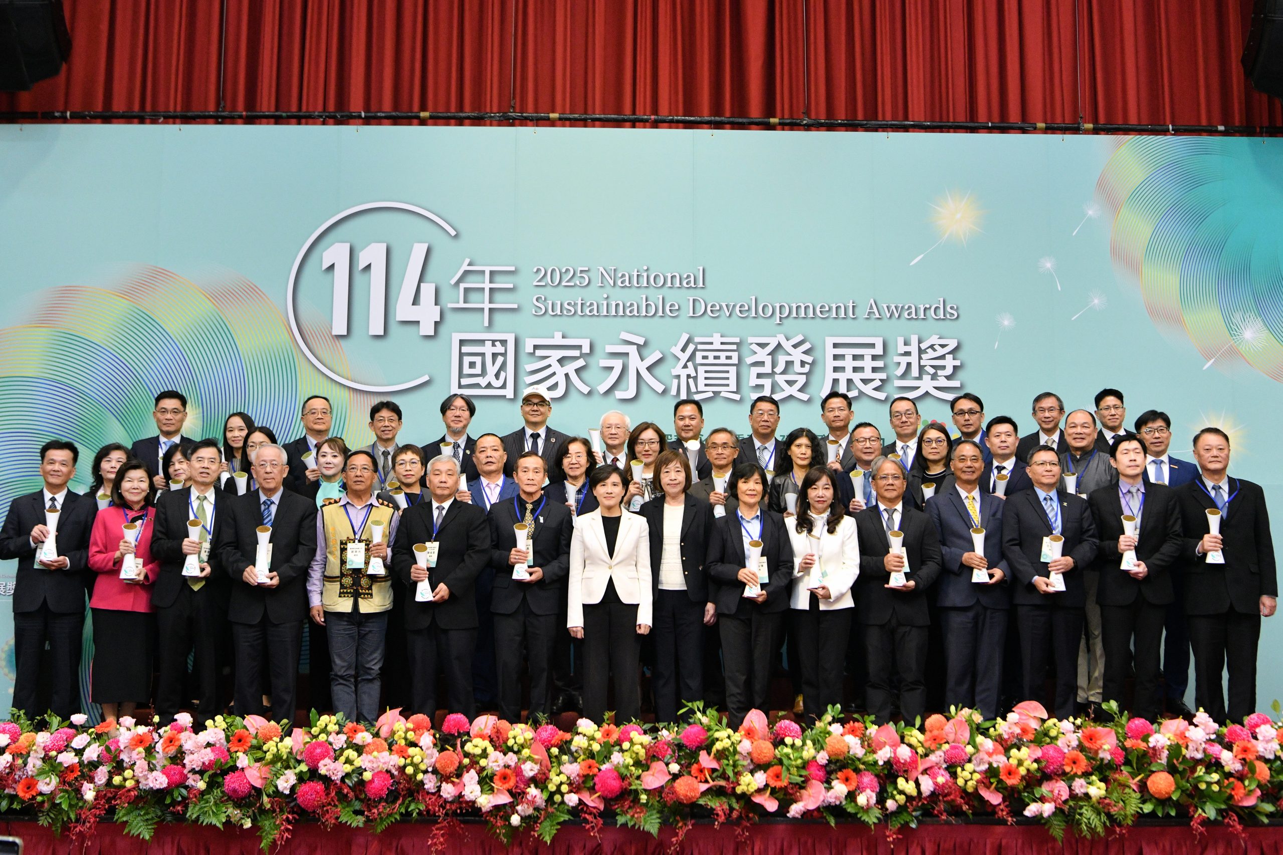 致詞結束後,鄭麗君依序頒獎予「教育類」、「企業類」、「民間團體類」及「政府機關類」共43位獲獎單位代表,並合影留念。2025/12/08