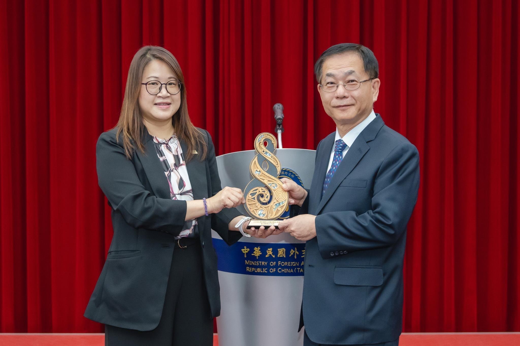【記者黃瀚慧/台北】外交部常務次長葛葆萱代表外交部長林佳龍於今(1)日在外交部主持茶會,歡迎「大洋洲台灣商會聯合總會回國訪問團」總會長賴逸雅一行。