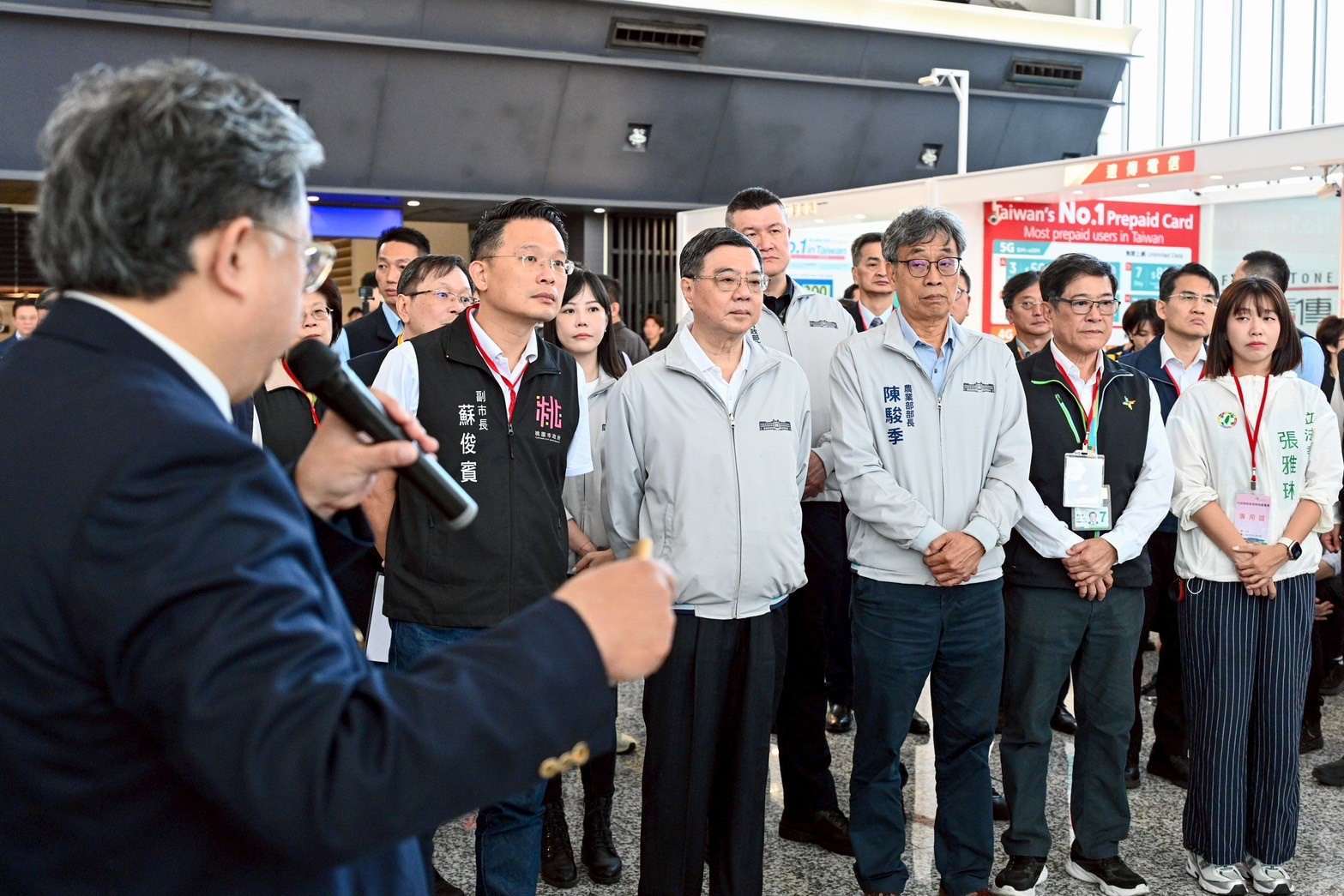 此行視察非洲豬瘟邊境檢疫措施,卓榮泰首先聽取農業部動植物防疫檢疫署陳宏伯分署長簡報,了解桃園機場入境旅客邊境防檢疫作為,並於致詞結束後,分別視察防檢署入境旅客手提行李X光查驗工作、財政部關務署海關紅綠線檯查驗措施,以及檢疫犬執勤情形。2025/11/08